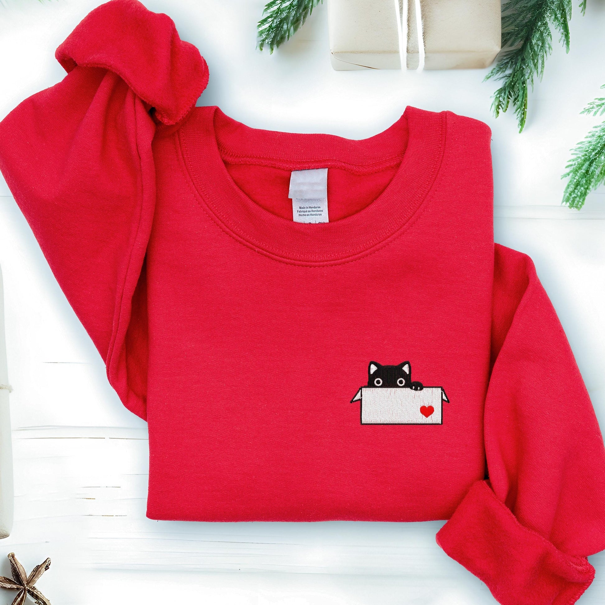 Black Cat in a Box Embroidery Sweatshirt